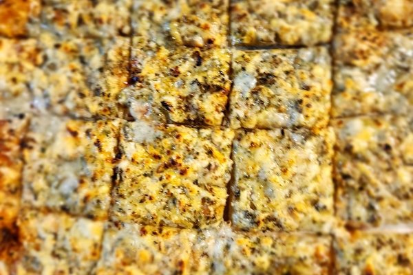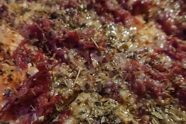 Massa fina, molho de tomate, parmessao, alho desidratado, gorgonzola e carne seca
