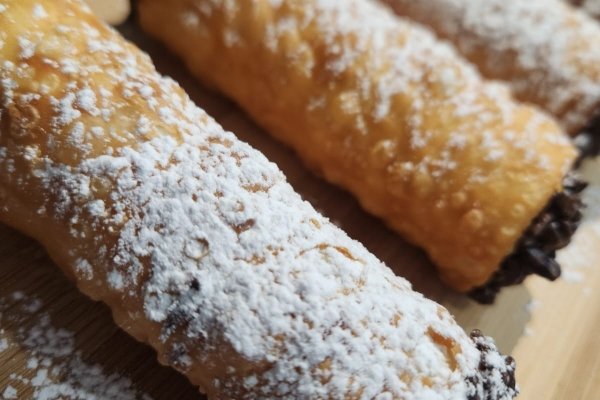 Massa frita crocante levemente adocicada recheada com doce de leite Havanna ou Nutella