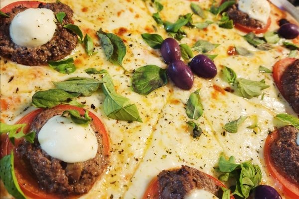 Mussarela, burrata de bufala, molho pesto, tomate pellati, azeitona pretas azapa e manjericão fresco. broto: R$ 87,90 , media: R$93,90
