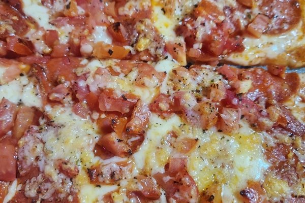 Mussarela, parmesão, pepperoni, alho e tomate picado. (BROTO: R$ 78,90 | MÉDIA: R$86,90