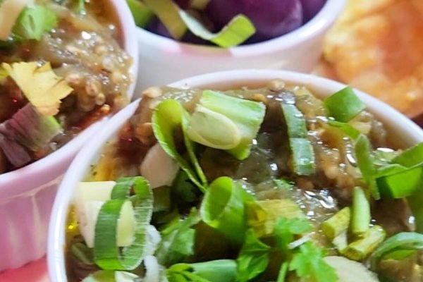 Mussarela, berinjela, azeitonas pretas fatiadas e pamesão. (BROTO: R$ 60,90 | MÉDIA: R$65,90).